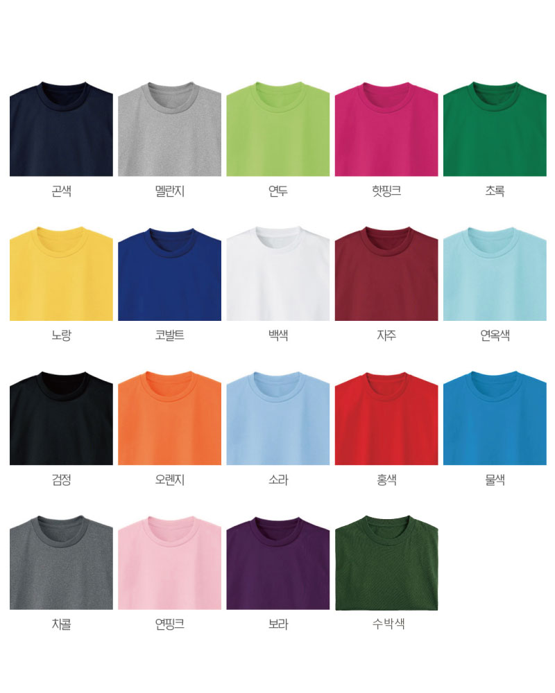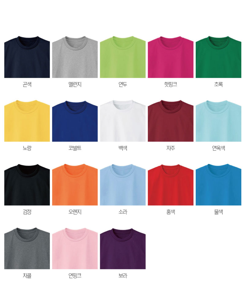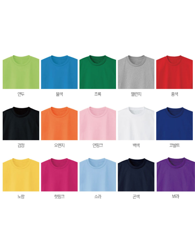 15개 색상 , 보급형 30수 코마사 면 반팔 스타일로 어린이집 행사티 및 모임 단체티로 퀄리티 대비 가성비 최고의 아이템!!!!