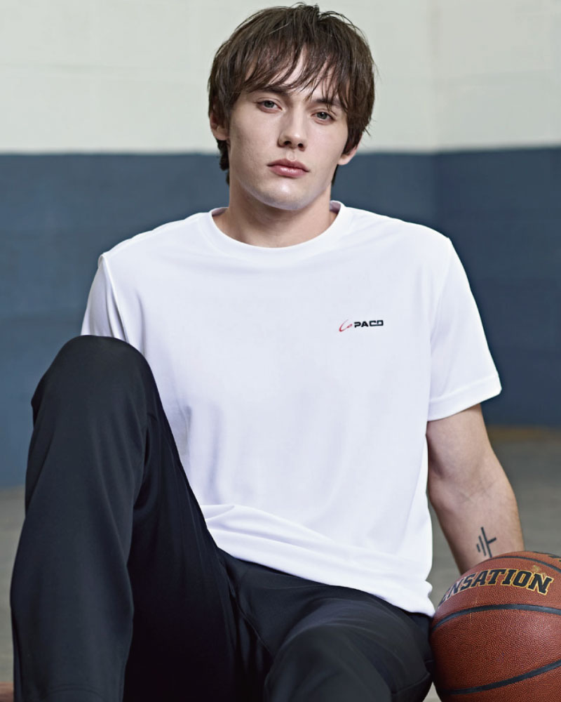 신축성과 부드러운 촉감의 스판소재로 수분 흡수력과 형태 회복력이 우수한 고급스러우면서도 캐쥬얼한 폴리 스판 소재의 라운드 반팔 제품.