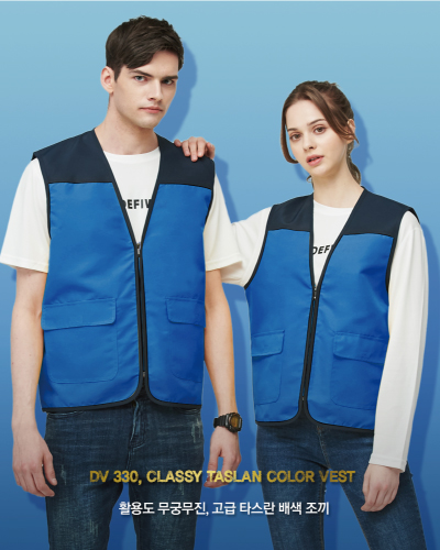 6개 색상, T/C 소재로 가볍고 튼튼한 사계절 가볍게 꺼내입을수 있는 다용도 배색조끼