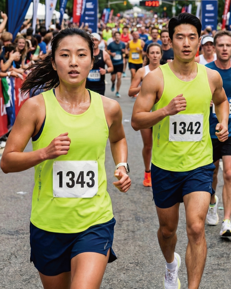 마라톤 의류에 특화된 기능성 원단을 사용 심플한 형광색 디자인