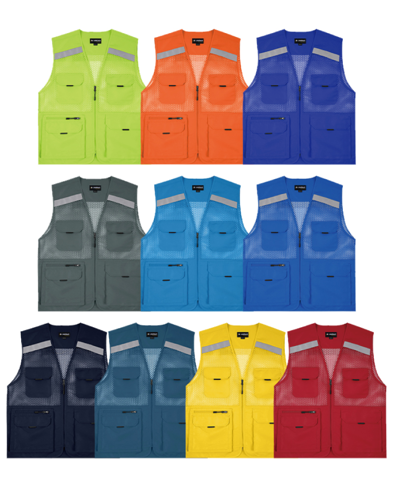 10개 색상, 왕망사 소재사용으로 통기성 우수, 전후면 반사 안전띠 설계로 등산,낚시,캠핑,현장작업 등 사계절 수납과 안전이 필요할때 유용한 아이템
