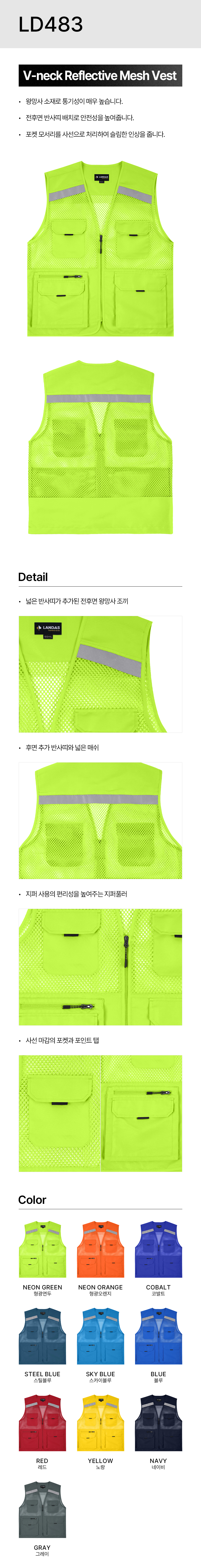 단체조끼 제작, LD-483 왕망사 반사 안전 단체 행사 스태프 작업용 현장 조끼 (남여공용)