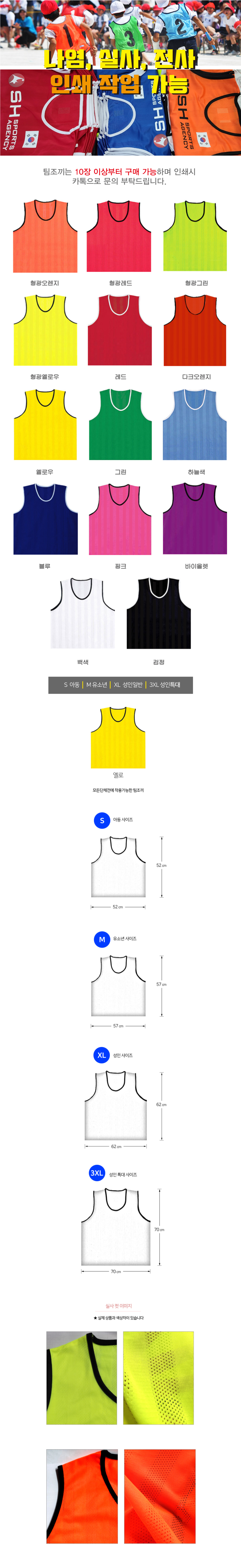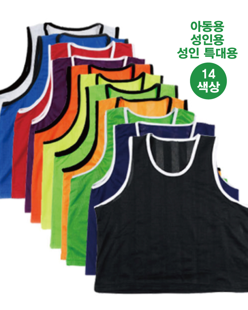 14개 색상 , 축구팀조끼 및 각종 생활체육활동에 적합한 가성비 좋은 망사 팀조끼 (아동,유소년,성인일반,성인 특대형 사이즈) **** 최소주문 색상별 10장인 상품입니다.