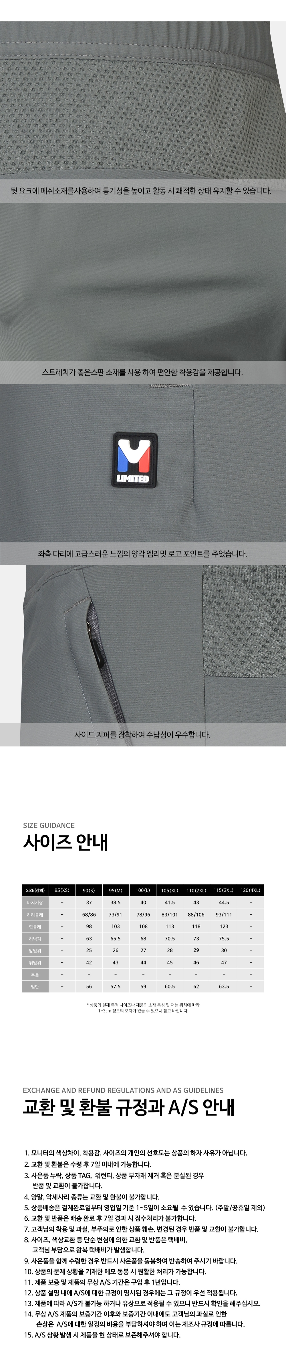 뒷 요크에 메쉬소재 설계로 통기성을 높이고 활동시 쾌적함을 유지하는 스포츠 활동에 최적화된 남성용 스판 3부 팬츠
