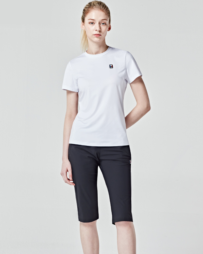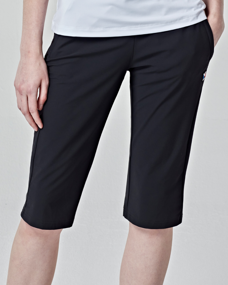 뒷 요크에 메쉬소재 설계로 통기성을 높이고 활동시 쾌적함을 유지하는 스포츠 활동에 최적화된 여성용 스판 7부 팬츠