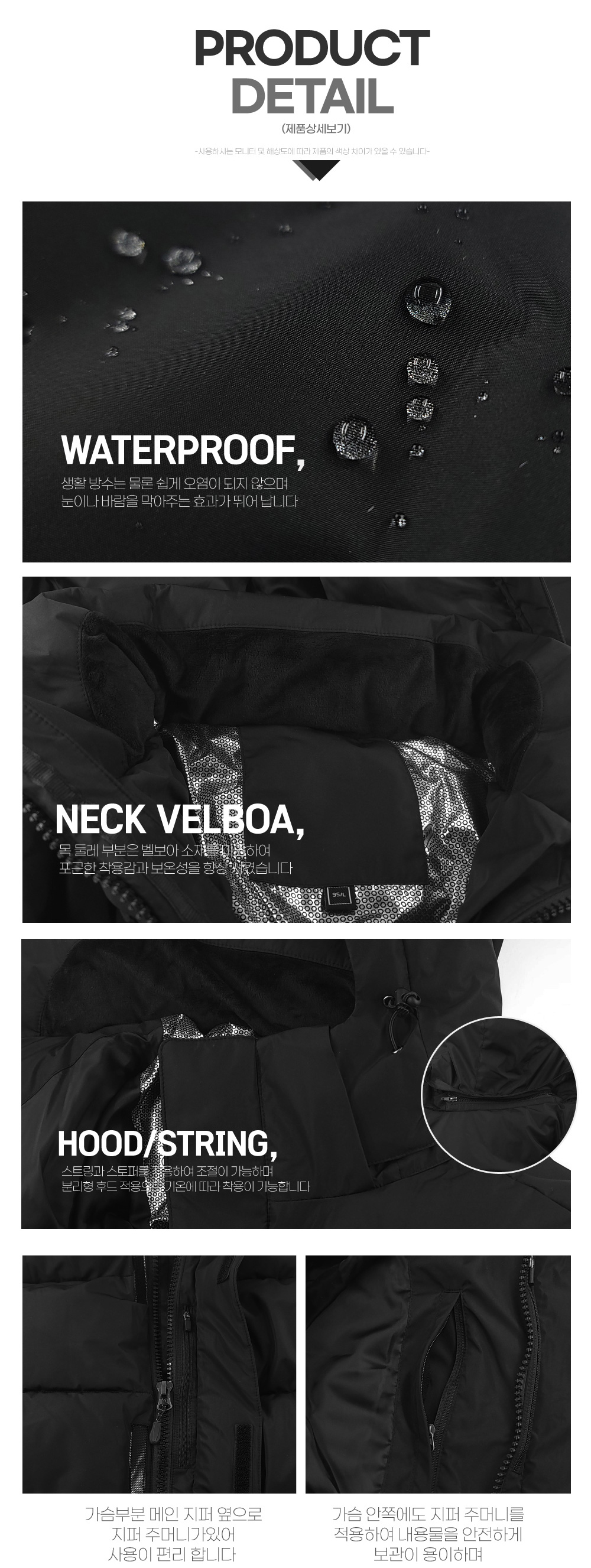 마이크로 에어볼 충전재 사용으로 보온성 및 경량성 극대화 방풍 및 생활방수 완벽한 벤치코트 (모든 인쇄 제작 가능)