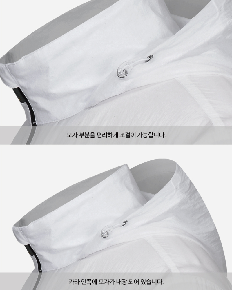 가볍고 고급스러운 나일론 소재의 경량 바람막이 자켓으로, 카라 안쪽에 모자가 내장된 스타일로 스포츠 활동과 일상 데일리룩으로도 손색이 없는 제품