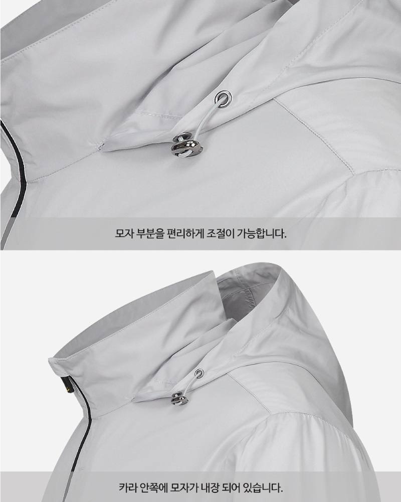 사이드 주머니를 지퍼로 장착한 깔끔한 자켓으로, 카라 안쪽에 모자가 내장된 스타일로 스포츠 활동과 일상 데일리룩으로도 손색이 없는 제품