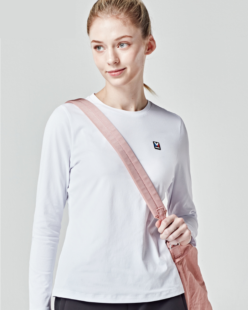 신축성과 부드러운 촉감의 소재로 수분 흡수력과 형태 회복력이 우수한 고급스러우면서도 캐쥬얼한 폴리 라운드 긴팔 제품.