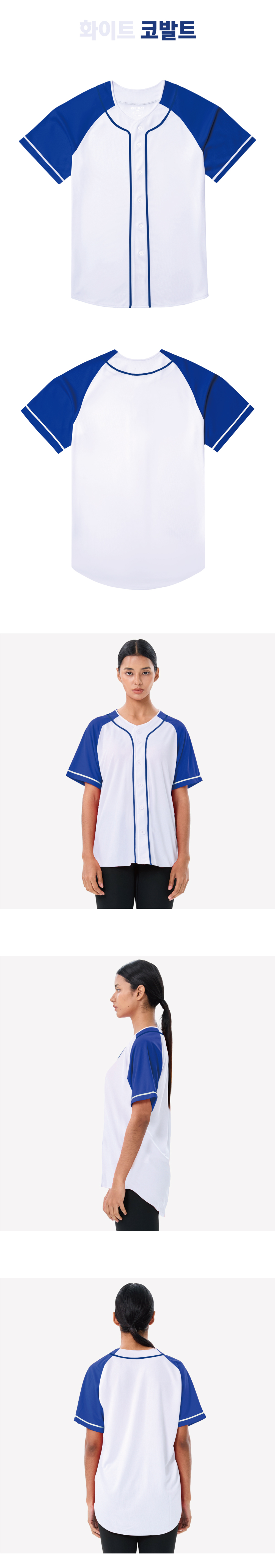 야구복 티셔츠 제작,체육대회 야구 반티-화이트/코발트
