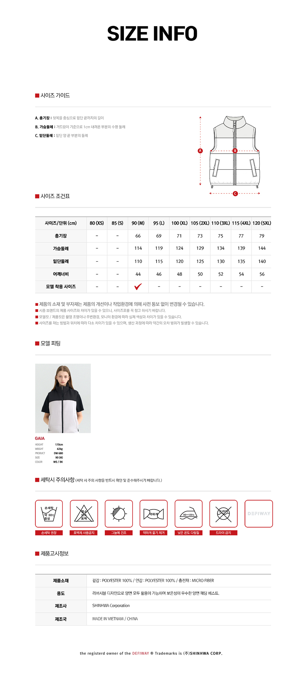 겉감 : POLY 100% / 충전재 : 웰론 100%