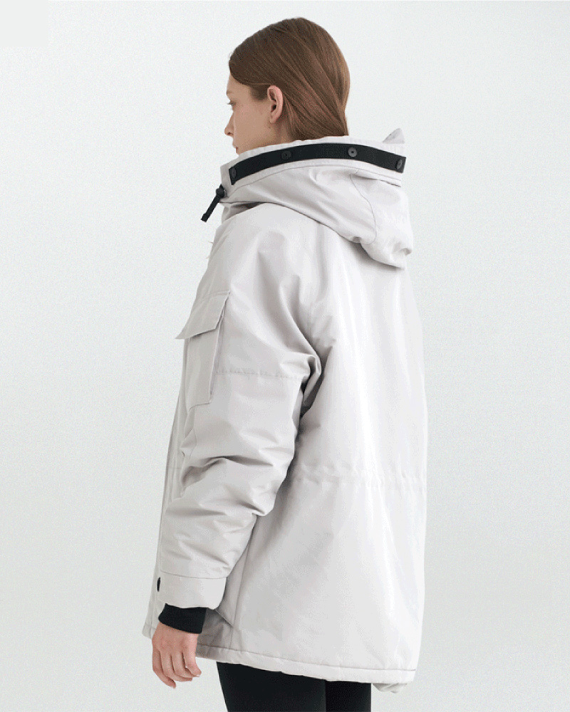 현대적인 디자인과 기능성을 겸비하여 우수한 보온성과 스타일을 동시에 챙긴 오버핏 패딩 코트 (모든 인쇄 제작 가능)