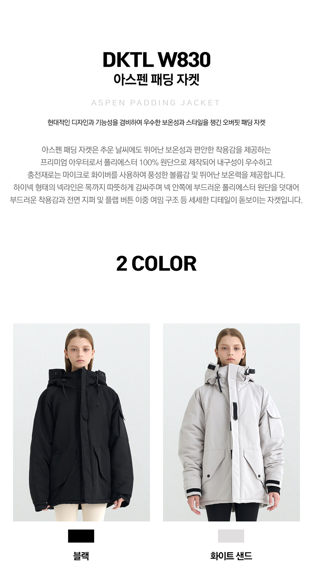 패딩자켓 단체 제작,DKTL-W830-화이트샌드 아스펜 패딩 (오버핏 패딩)