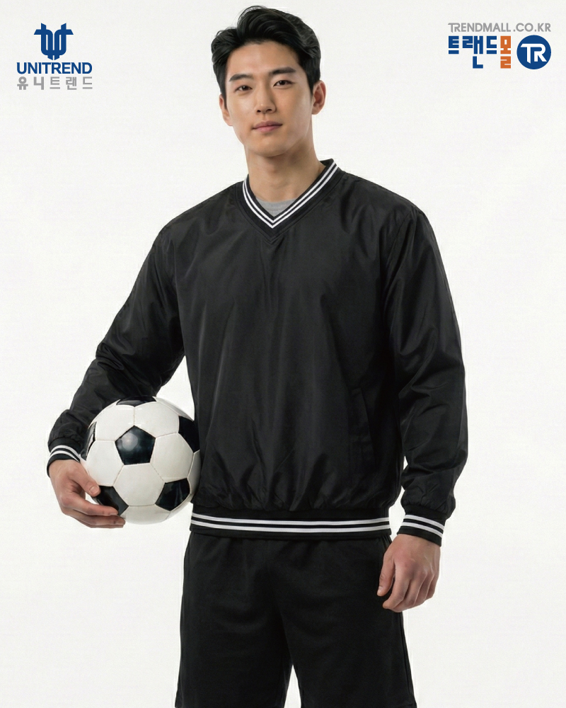 단체 바람막이 제작, 브이넥 팀스포츠 자켓 615-검정 (남녀공용)