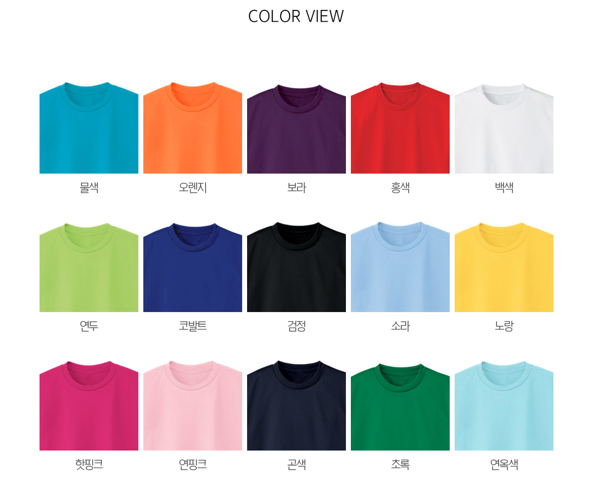 15개 색상 , 보급형 30수 코마사 면 반팔 스타일로 어린이집 행사티 및 모임 단체티로 퀄리티 대비 가성비 최고의 아이템!!!!
